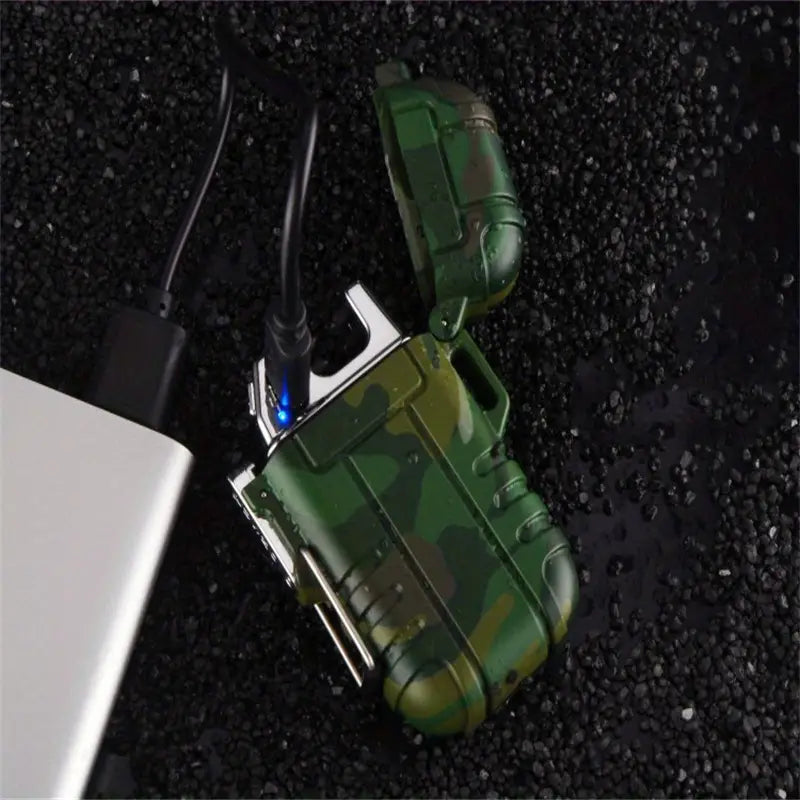 Portable Dual Arc Lighter for Outdoors - Waterproof Camouflage